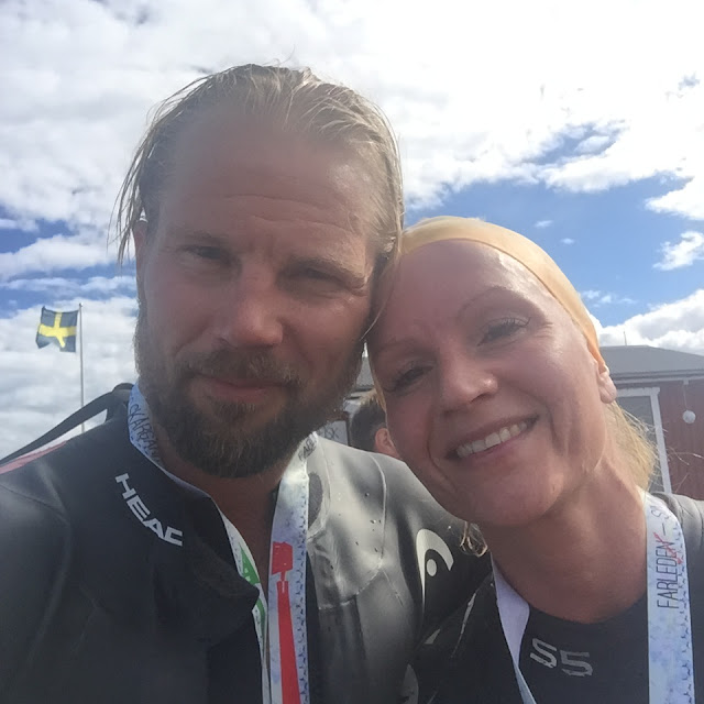Veckan innan loppet, under en semestervecka i Dalarna fick hon då till sist till en sim och springträning i Skärså. Hon simmade i Bottniska viken och sprang en kort slinga mellan de pitoreska fiskestugorna. Hon tyckte att det kände bra och vi bestämde oss för att köra loppet.