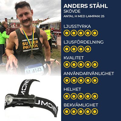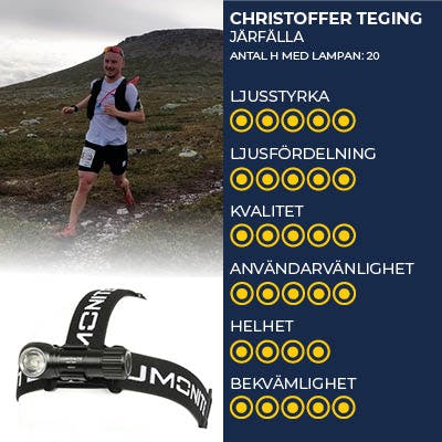 Superbra och smidig lampa för trailrunning i mörkret. Vid extremt stökiga stigar i högt tempo skulle jag välja någon av Lumonites större/starkare varianter men den här blir definitivt min "Go-to lampa" vid träning i mörker. Mycket bra pannlampa, till en enligt mig rimlig kostnad.