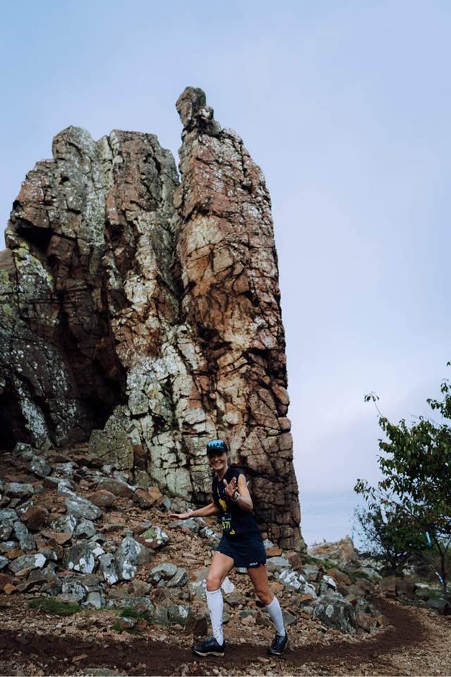 Vi kom ut på några kilometer grusväg och vidare på asfaltsväg upp till den andra vätskestationen vid 15 km, härligt med en kanelbulle och lite mer sportdryck och jag började räkna ner till mål. Banan vände åter ner i skog, genom hagar och nedför leriga stigar. Många löpare tog omvägar in i buskagen för att undvika leran, jag som älskar att springa i vatten och gegga öste på rakt igenom och sprang om. Med bra skor och kvicka fötter är det galet roligt att släppa på farten utför och ge sig hän! Vid 18 kilometer började den långa nedförsbacken och vi sprang ända ner till havsnivå igen, knappa 3 kilometer kvar till mål.