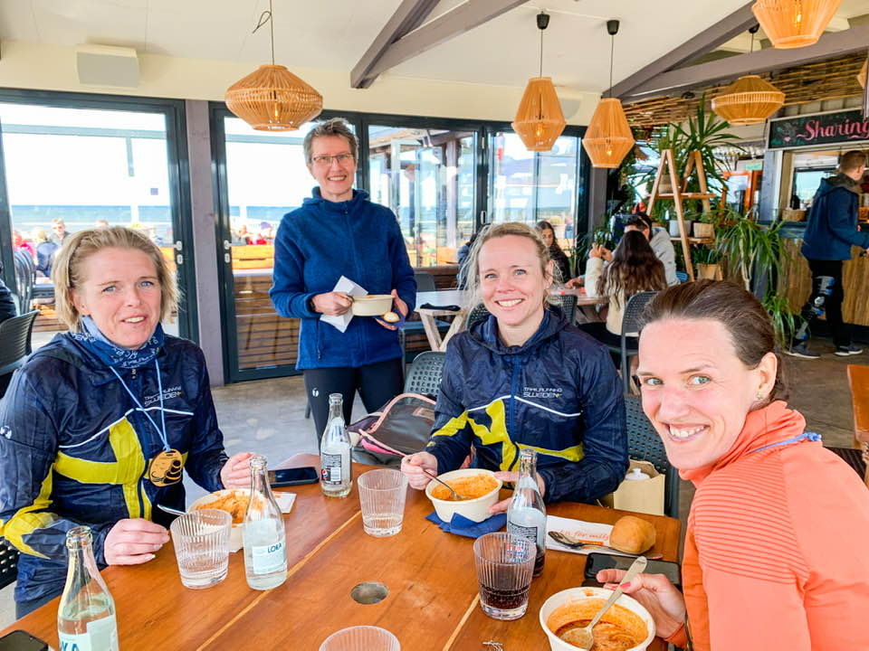 Efter loppet gick vi till restaurangen Badkrukan precis vid målområdet och åt en varm god soppa. Trots värmen under loppet blev jag riktigt kall i vinden efter målgång så det kändes skönt att komma in, byta till torr tröja och få varm mat.
