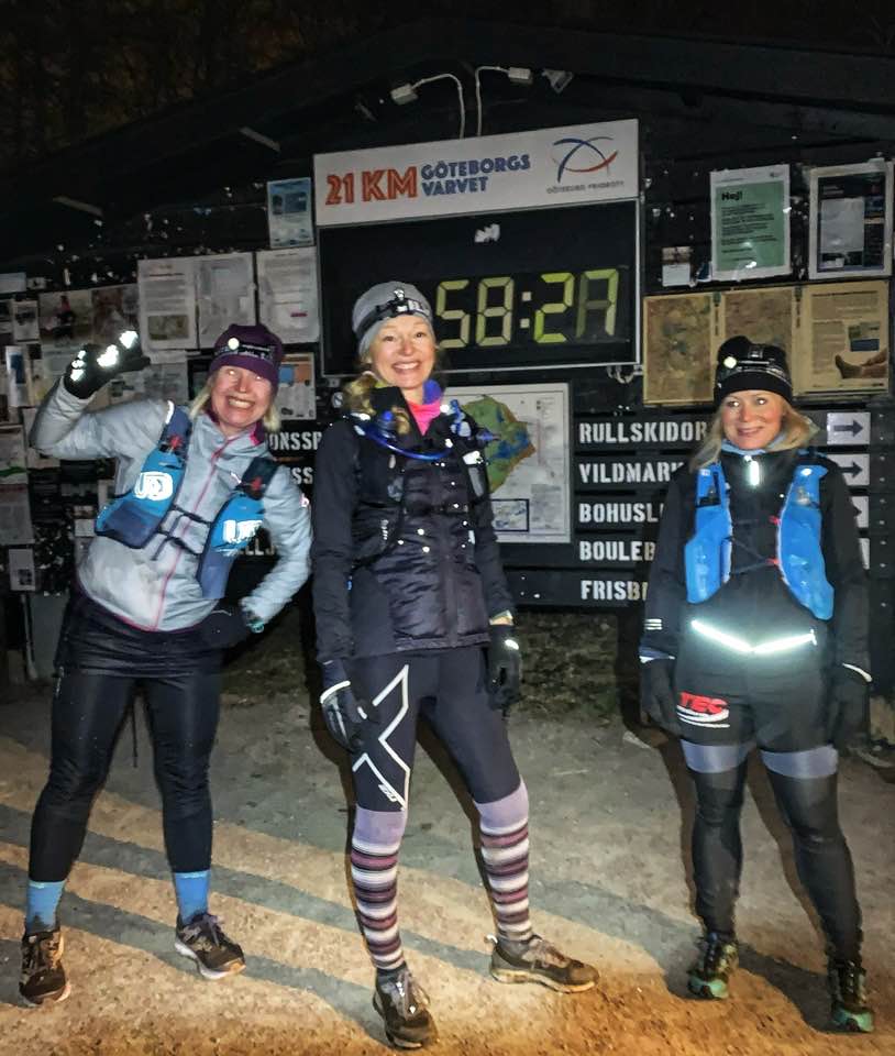 Vi har 14 h på oss att ta oss i mål, det är även reptider vid checkpointsen men om inget oförutsett inträffar tror jag inte att det ska vara några problem att hinna i mål. Härligt att ha målbilden klar, att springa in vid klockan i Skatås och jubla. Få medalj och njuta av varm mat.