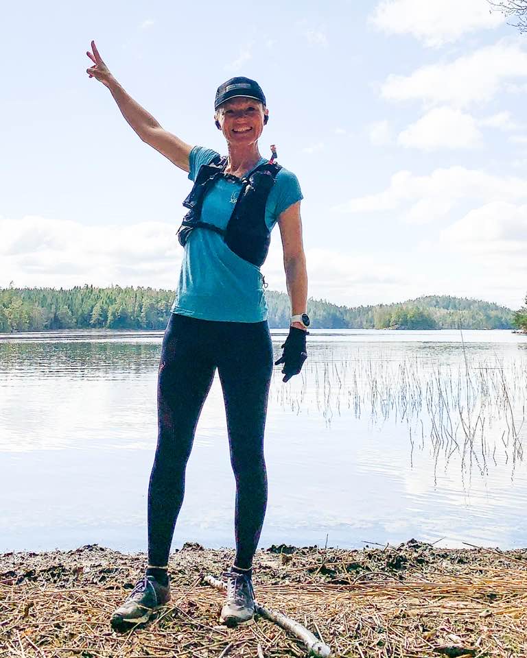 Min utrustning kommer vara samma som jag använder på långpass, Icebugs trailskor Capra som passar utmärkt till löpning på det här blandade underlaget, Silvas Strive Light 10 löparryggsäck med 2 x 5 dl softflaskor med vatten och Umara sport och sköna löparkläder från 2XU Nordic. Troligen väljer jag shorts och linne men skulle väderprognosen lova regn tar jag nog långa tights och packar en regnjacka i ryggan. Som energi brukar jag börja med ostmackor och kokt, saltad potatis för att gels och godis ska landa mjukt i magen längre fram i loppet. När banan inte går på uppmärkta leder kommer den vara snitslad med små flaggor men för säkerhets skull har jag redan laddat ner rutten i klockan Polar Pacer Pro, det är alltid skönt att slippa bli orolig för felspringning om flaggorna sitter glest eller har försvunnit.