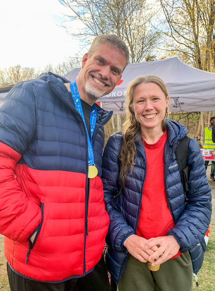 I mål väntade min man och Saras man Johan, han sprang på drygt 10 h, fantastiskt starkt! Vi kramade om Tommy och Sofia som sprang Täby Extreme Challenge förra helgen och nu detta, Tommy fick silvermedalj i sin ålderklass och Sofia brons i sin.
