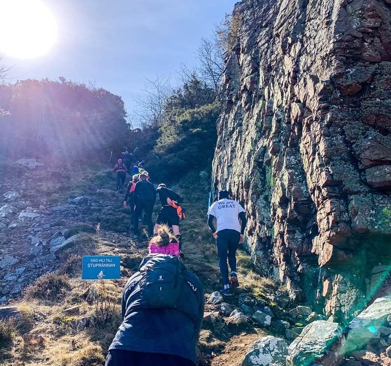 Ja, banan är som sagt väldigt vacker! Tänk på det när du springer, lägg märke till de olika naturtyperna som du passerar genom. Strandängar och beteshagar i början längs havet, sedan stenstränder och rätt knöggligt underlag som kräver starka fötter. De första 8 kilometrarna är ändå rätt enkla, innan vi kommer till Hovs Hallar med kraftiga klättringar både uppför och nedför. Det är en spännande natur som kommer kräva flera fotostopp, det kan nog bli häftiga bilder om vädret är lite dimmigt. Efter första vätskestationen vid 9 km blir naturen annorlunda, vi springer på smala, förmodligen mycket leriga, stigar längs bergskanten och får några rejäla stigningar. Genom bokskog och upp till den lantliga bebyggelsen där vi kanske träffar på lamadjur i en hage.