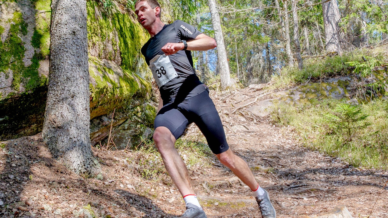– Efter varvningen bär det in bland stock och sten, och upp på en gles tallskogshöjd. Sedan vänder det nerför och du får springa rakt igenom en gammal kolbotten. Därefter är det några hundra meter barkbelagd stig innan du gör en sista obanad lov, innan du kommer ut på det öppna fältet och den efterlängtade målgången.