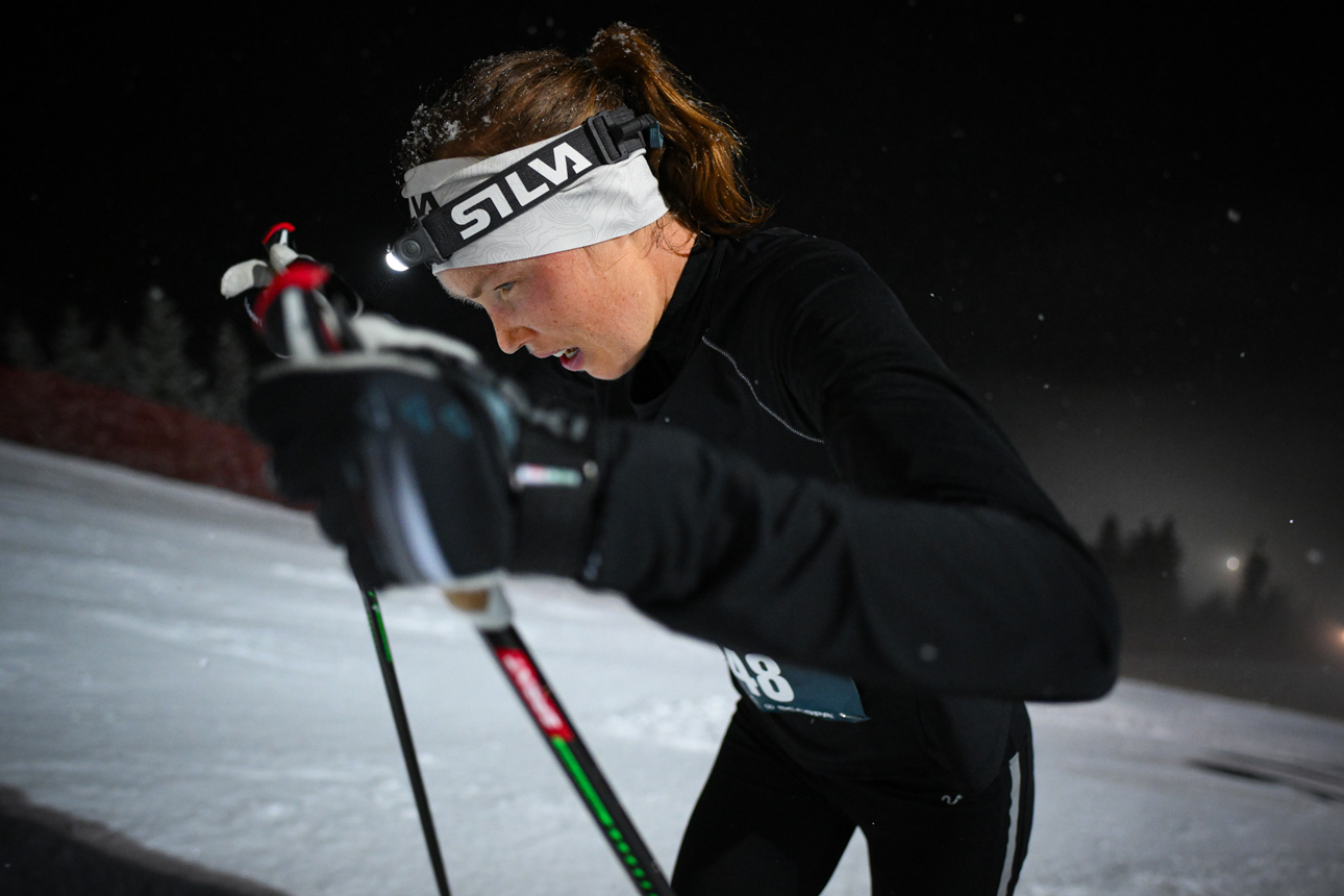 - Tyvärr är det ganska snöfattigt här, bara konstsnö i backarna och lite natursnö på högre höjd, vilket märktes i dagens lopp. Jag visste på förhand att min styrka skulle vara löpning i flackare terräng, så jag såg till att hålla hög fart från början och lägga mig i tät. När klättringen började efter 7-8 km hade jag skaffat mig ungefär 1 minuts försprång, men när jag tittade ner i backen såg jag att nästa löpare hade oroväckande lätta steg medan jag kände av gårdagens höjdmeter i benen.