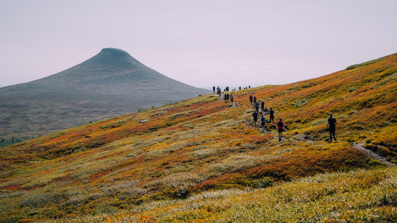 Så vad är det då som väntar löparna? Öppen tallhed, storskog och myrar, genom den lågvuxna fjällbjörken och upp på fjället. Små vindlande stigar, tjärnar, vyer åt alla håll, brutala partier där du funderar över hur mycket sten det kan finnas på ett fjäll. Klättringar, främst den uppför ikoniska Städjan som reser sig 1 131 meter över havet, men underskatta inte de som kommer senare.