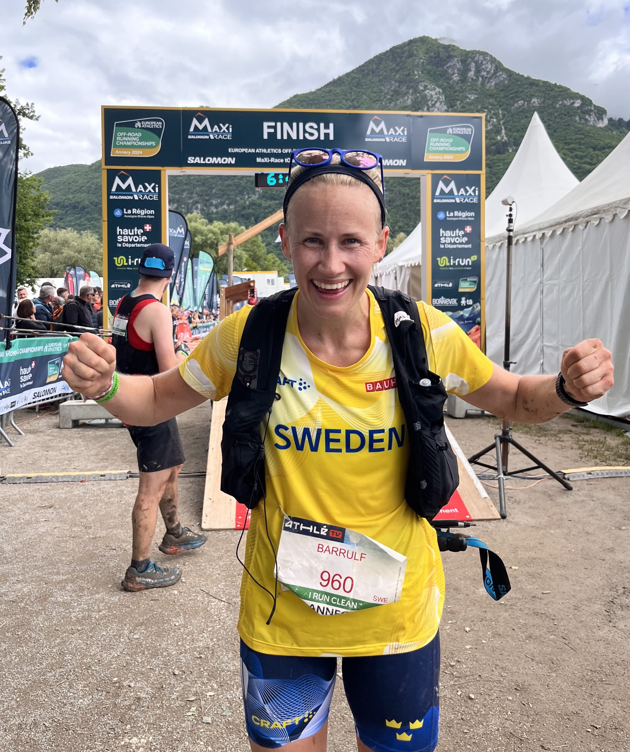 När trailloppet över 58 km och 3 500 höjdmeter avgjordes idag, var det två dalkullor som försvarade Sveriges färger med den äran. Barbro Fjällstedt Oljans blev 9:a och Malin Barrulf 22:a.