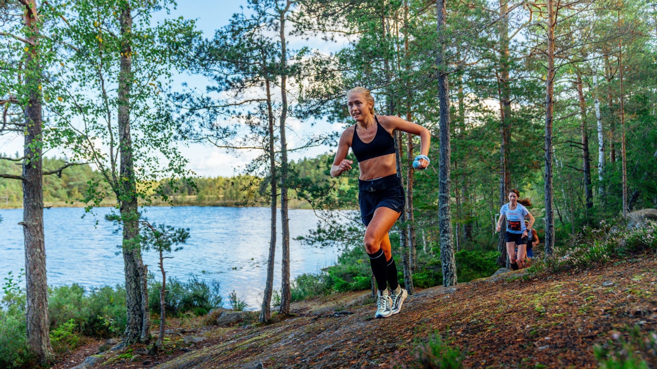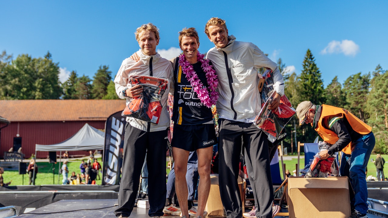 - Det kändes väldigt bra idag, frånsett att jag vred till knät på en spång vid 9 km och fick stanna och gå en stund. Jag tog initiativet från start, vid 6 km hade jag skakat av mig Emil och Gustav, sen flöt jag bara på i ett hårt men bra tempo. Perfekt genomförande inför kommande äventyr! Väldigt fin bana, väldigt flowiga stigar, säger Linus som var bara 12 sekunder från det banrekord som Olle Kalered satte ifjol, då pressad av Axel Granqvist ända in på de sista kilometrarna.