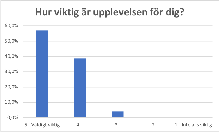 En förkrossande majoritet av traillöparna (96%) menar att upplevelsen är väldigt viktig eller viktig för dem. Prestationen däremot är det bara 31 procent som rankar som väldigt viktig eller viktig.