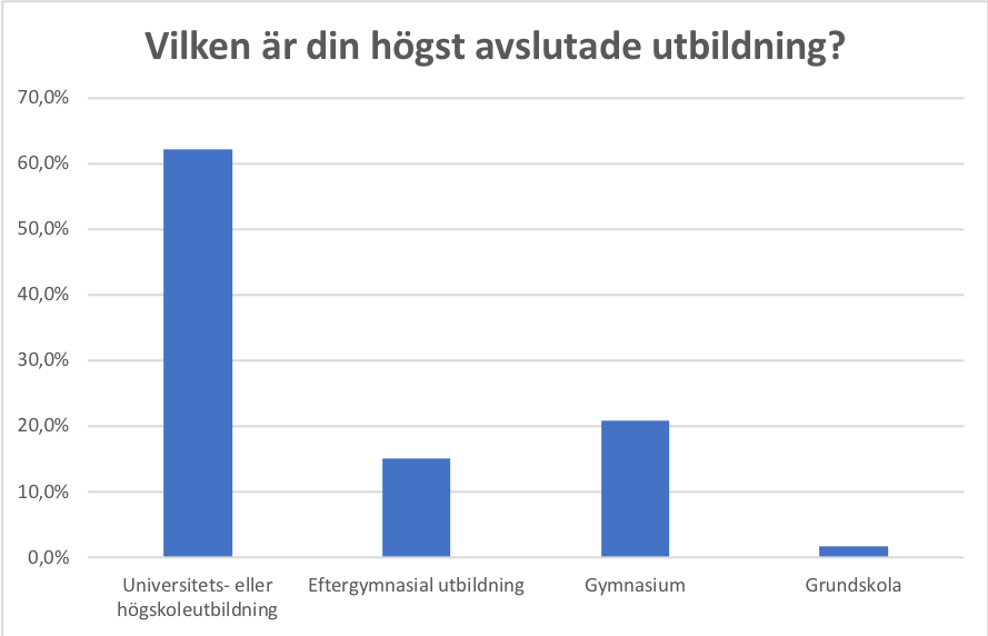 Enkätundersökningen genomfördes på trailrunningsweden.se den 7 februari – 15 mars 2019. 1 037 personer svarade.